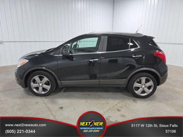 Text MeTHIS 2013 BUISE ENCORE WAS OWNED BY ONE OF OUR LONG TIME SERVICE CUSTOMERS AND WAS VERY WELL TAKEN CARE OF. THE 1.4L TURBO MOTOR WILL GET YOU GREAT GAS MILEAGE WHEREVER YOU GO. THE AWD HELPS NICELY FOR THOSE MIDWEST WINTERS. THE POWER SEATS, HEATED SEATS, HEATED STEERING WHEEL, LEATHER INTERIOR, AND BACK UP CAMERA ARE ALSO FEATURES YOU WILL SURELY FALL IN LOVE WITH HAVING. AS WITH ALL OF OUR VEHICLES, THIS VEHICLE HAS BEEN THROUGH A THOROUGH INSPECTION, ALL FLUIDS CHECKED FOR RELIABILITY, ALL TIRES INSPECTED FOR WEAR AND RECOMMENDED INFLATION. IF NEEDED, TIRES HAVE BEEN REPLACED. WE ALSO DO A VERY THOROUGH DETAILING OF OUR VEHICLE TO ENSURE IT SHINES LIKE YOUR FAMILY DOES.WHAT`S KEEPING YOU FROM COMING ON DOWN AND TAKING ADVANTAGE OF OUR OUTSTANDING AND FRIENDLY STAFF? A PLACE WHERE YOU WILL FEEL WARM AND WELCOME. WE DON`T JUST SELL CARS TO CUSTOMERS, YOU BECOME ONE OF THE NEXT2NEW FAMILY. YOU CAN ALSO TAKE ADVANTAGE OF OUR FULL SERVICE AND DETAIL SHOPS FOR ALL YOUR DIRTY JOBS.WE CAN FIX YOU UP, CLEAN YOU UP AND HAVE YOU FEELING LIKE YOU`RE DRIVING A WHOLE NEW CAR. WE LOOK FORWARD TO YOUR VISIT AND GETTING YOU ON THE ROAD WITH A SMILE ON YOUR FACE. STOP BY AND TAKE THIS VEHICLE FOR A TEST DRIVE. CALL US AT 605-221-0344 WITH ANY QUESTIONS YOU HAVE. -- TRADES WELCOME -- FINANCING & EXTENDED SERVICE CONTRACTS AVAILABLE -- SHOP NEXT-2-NEW WHERE YOUR NEXT CAR MAY NOT BE NEW PRICE, BUT WILL BE NEXT2NEW CONDITION!!! OPEN 7 DAYS A WEEK.